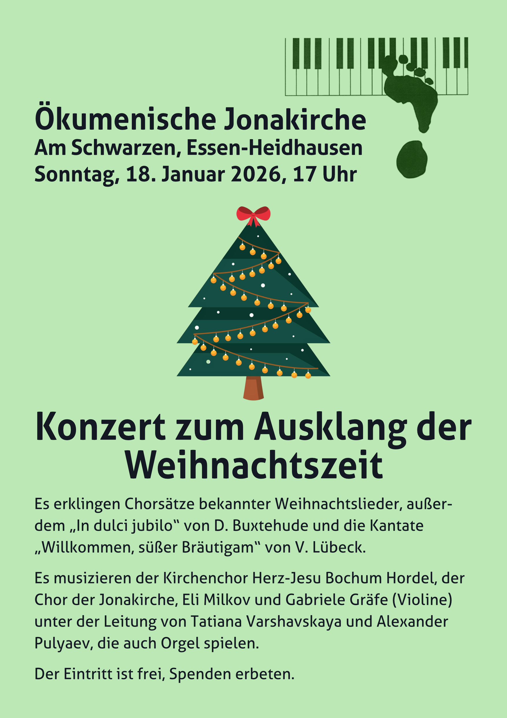 Es predigte Pfarrer Klaus Baltes. Tatiana Varshavskaya und Alexander Puyalev musizierte zusammen die Klaviersonate zu vier Händen B-Dur (KV 358) von W.A.Mozart.